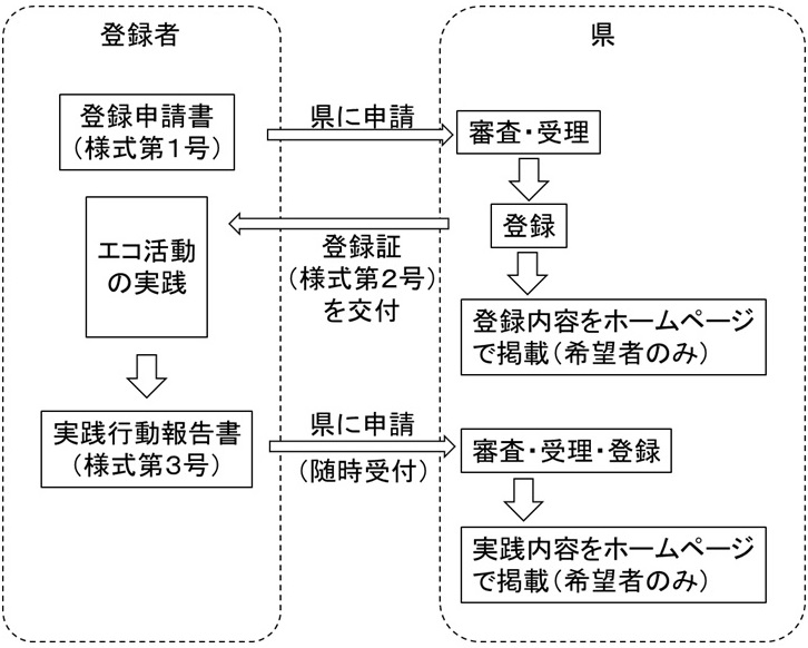 登録者が実践行動を実施した場合は、その活動内容を県に対して報告し、県が内容を妥当とした判断し、登録者が希望する場合は県のホームページにて内容を公表することができます。