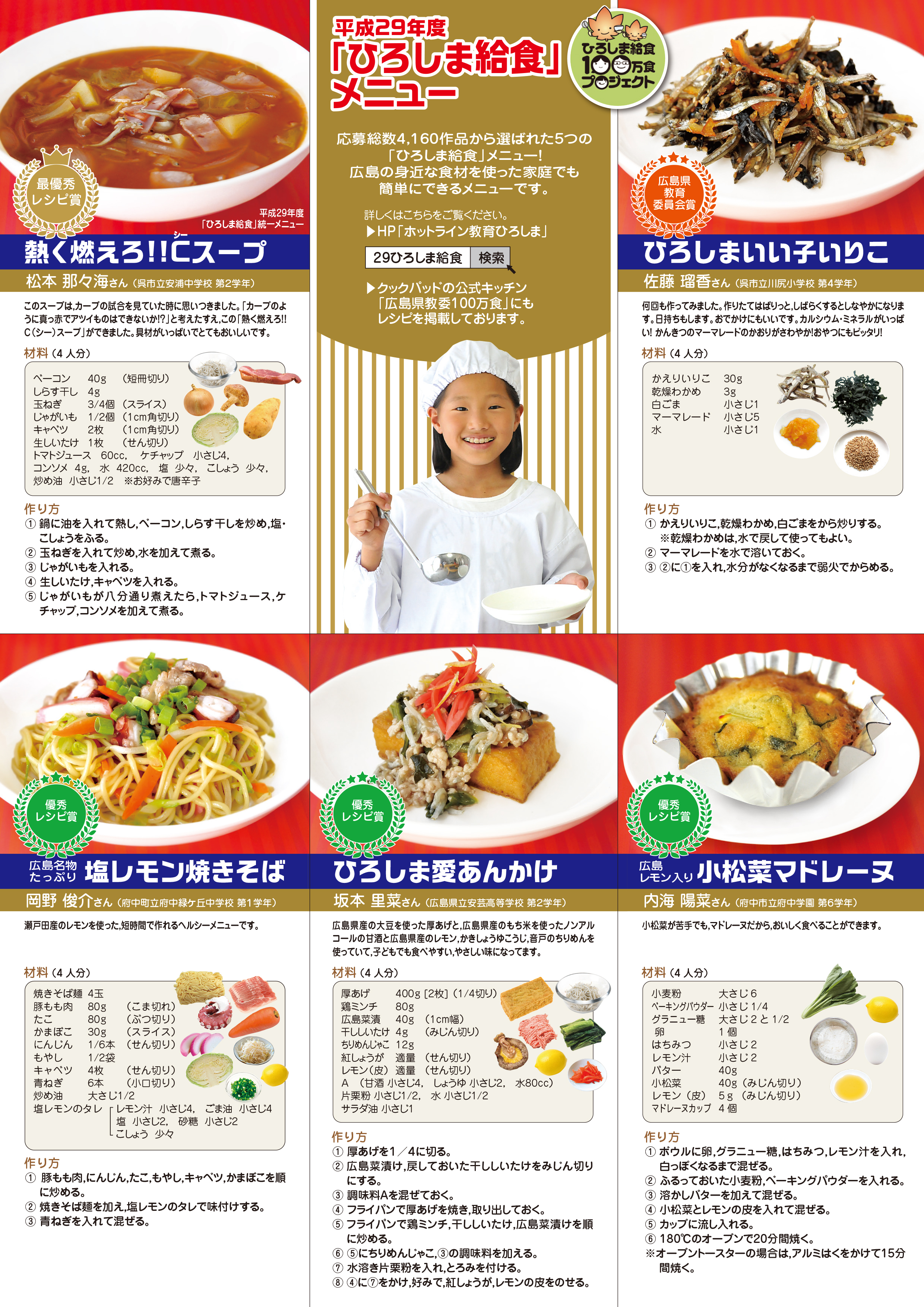 クックパッド公式キッチン「広島県教委100万食」のレシピも更新しました!!